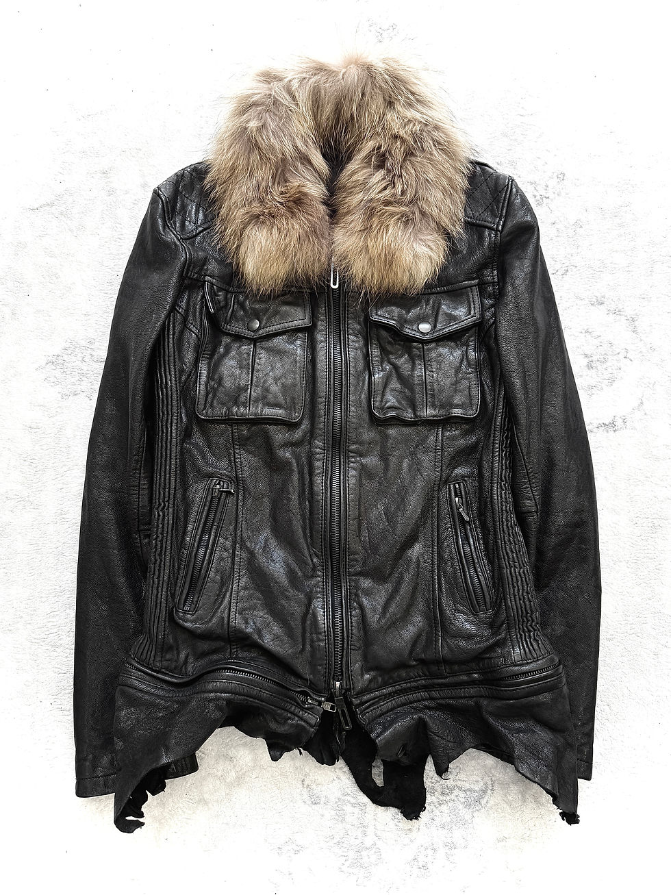 LolitaJeans denim has built a reputation for reliable flared jeans. This pair features a flare design similar to those of Tornado Mart jeans; moreover, they include retro-inspired back pockets with zippers. The denim is fully whisker-washed, giving it an alternative look.
